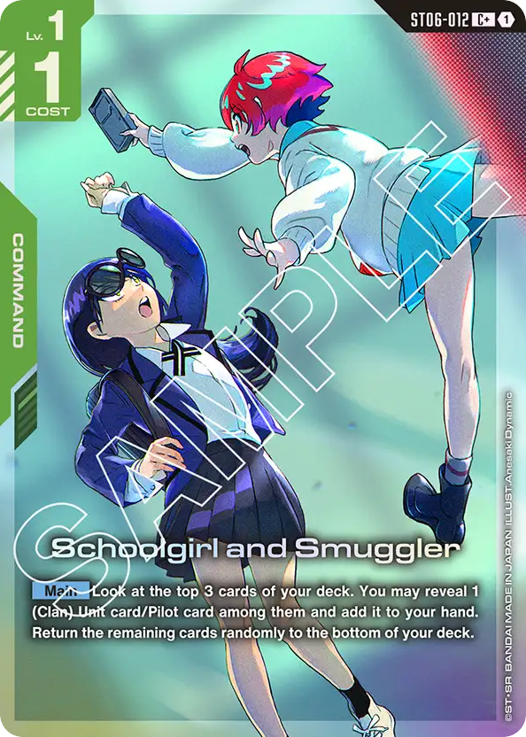 [Main] Look at the top 3 cards of your deck. You may reveal 1 (Clan) Unit card/Pilot card among them and add it to your hand. Return the remaining cards randomly to the bottom of your deck.