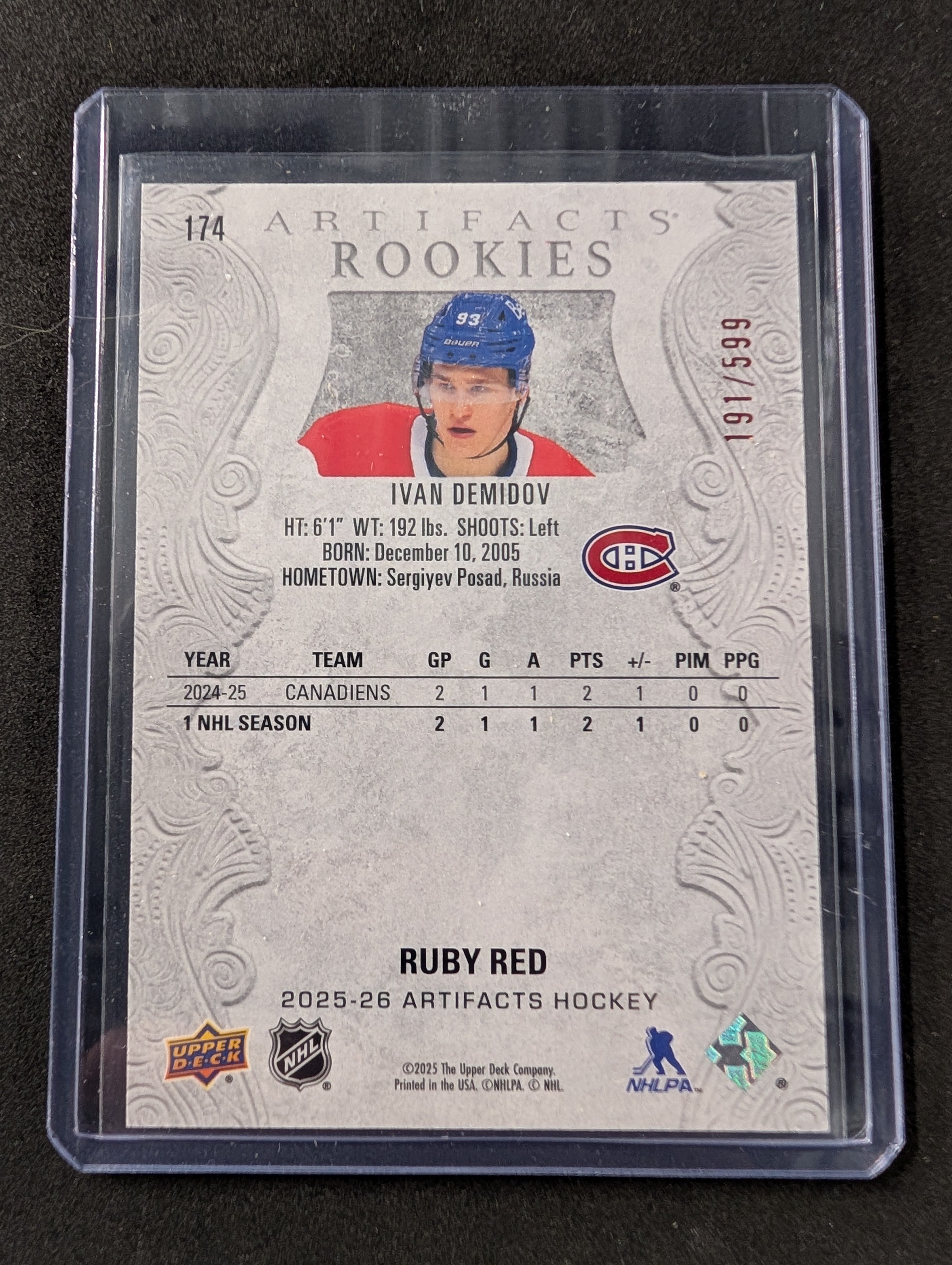 2025-26 Artifacts Rookies Ivan Demidov Ruby Red /599